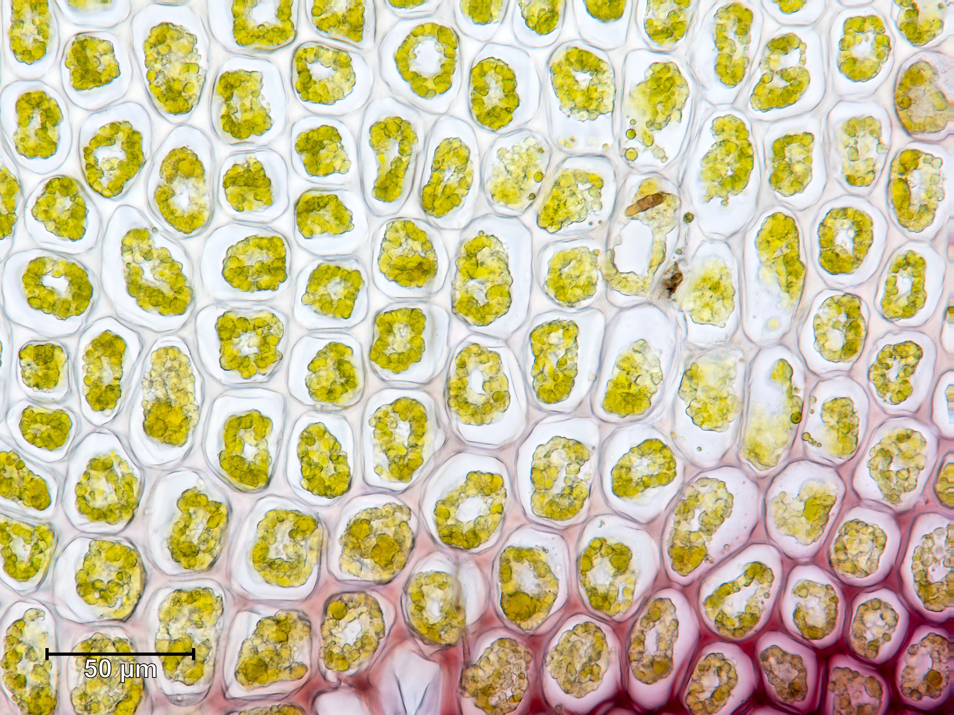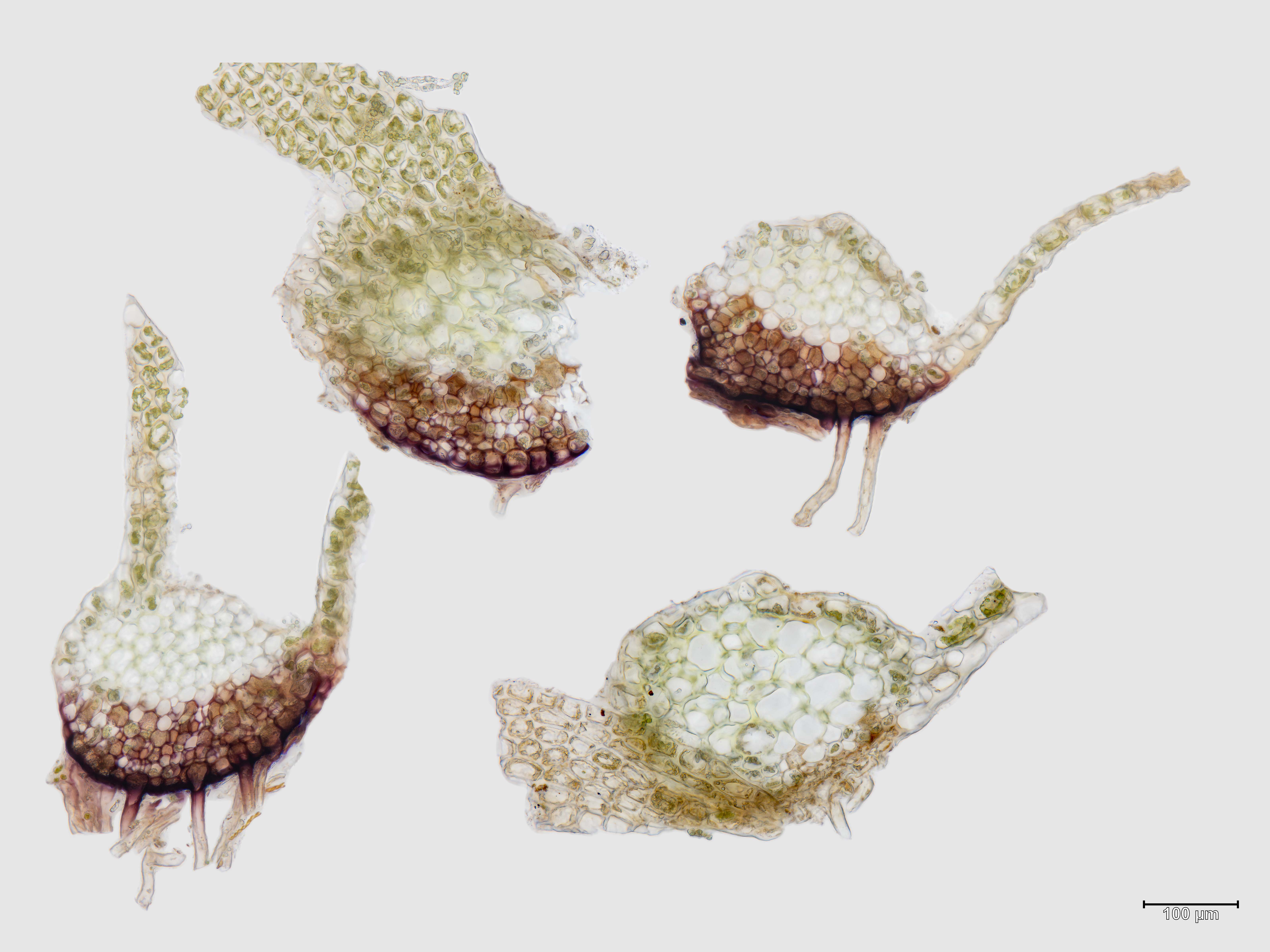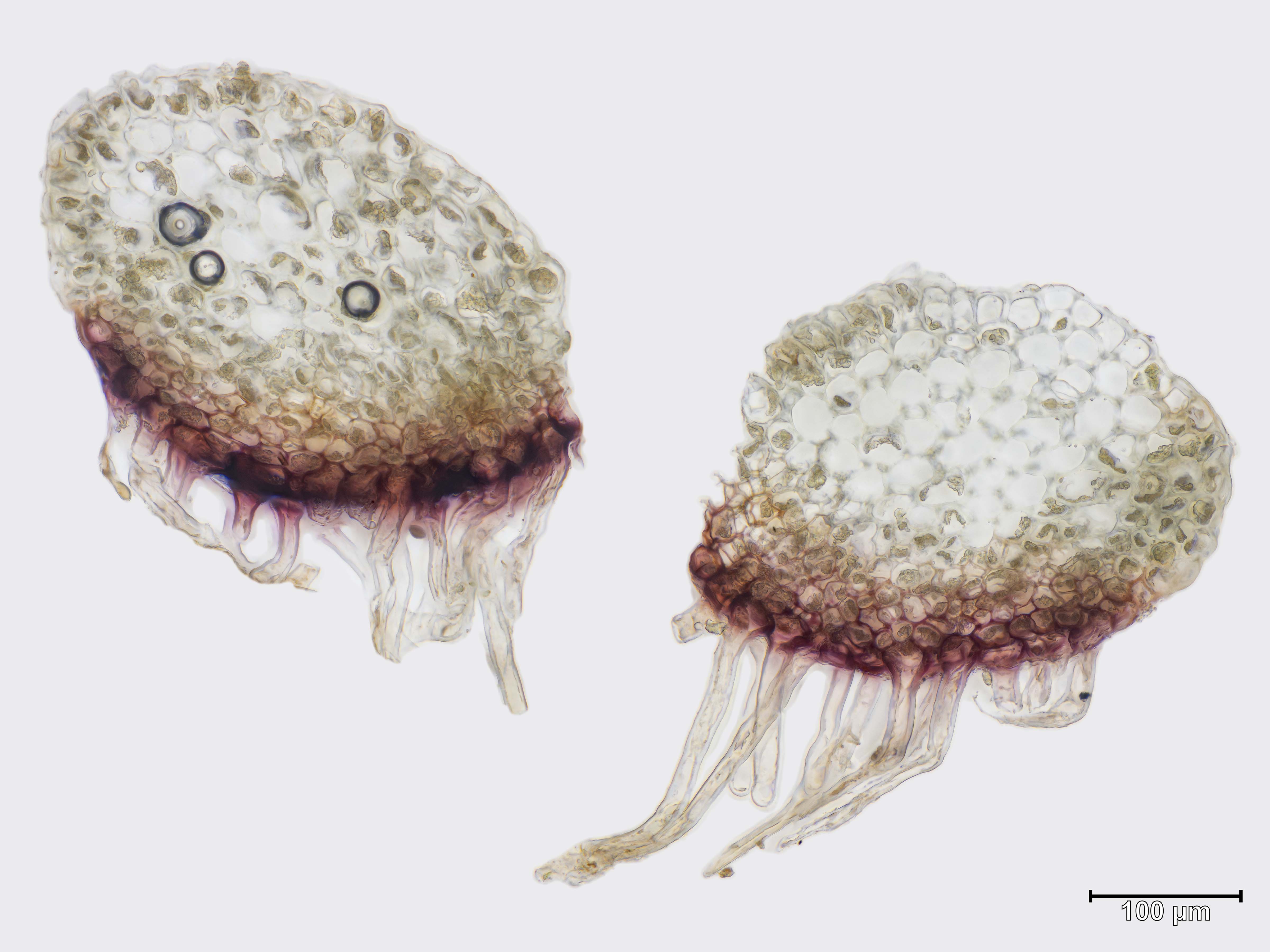 ![]() Schistochilopsis hyperarctica Brutgemmen | ![]() Schistochilopsis hyperarctica Stämmchen (Querschnitt) |