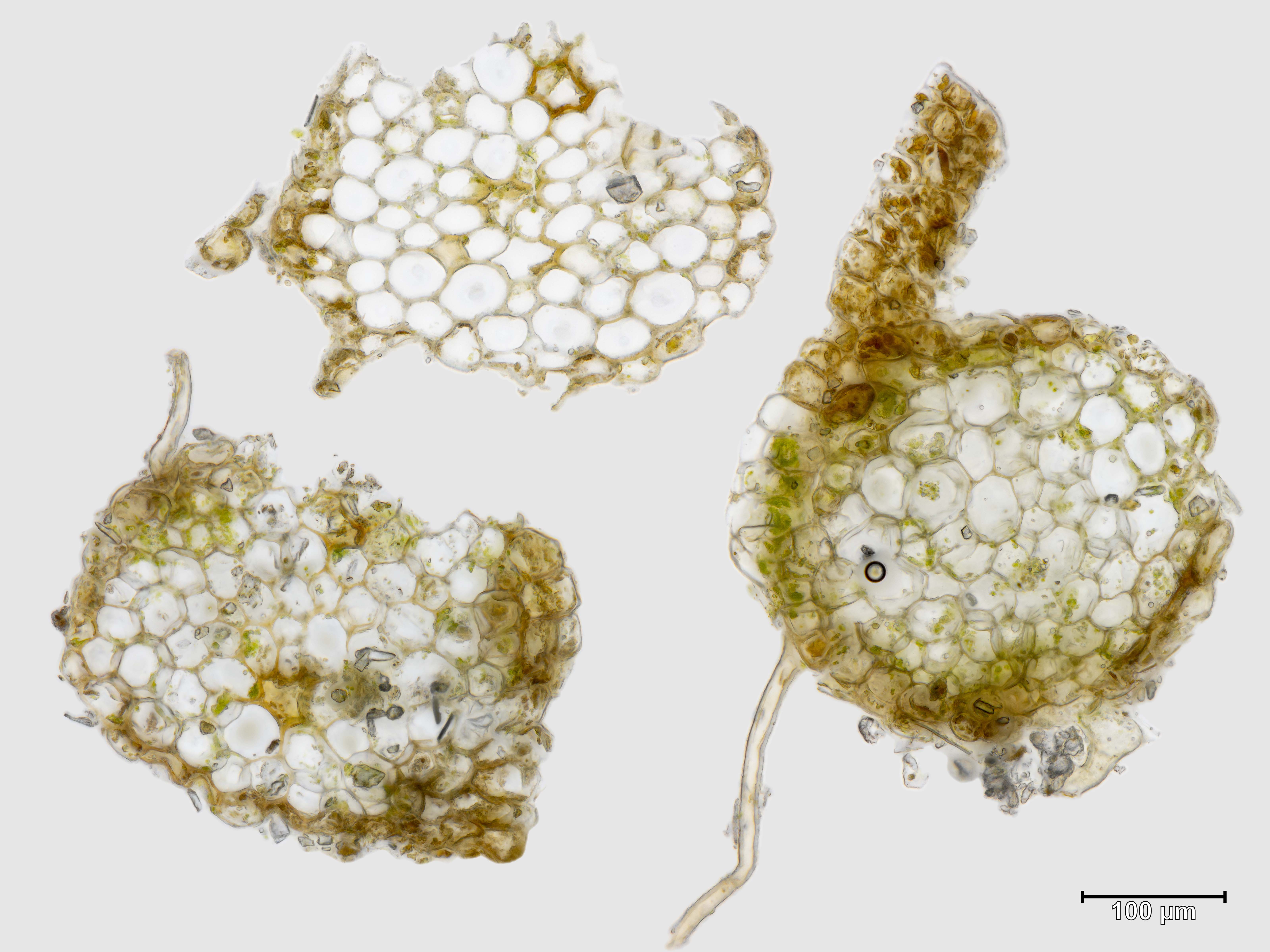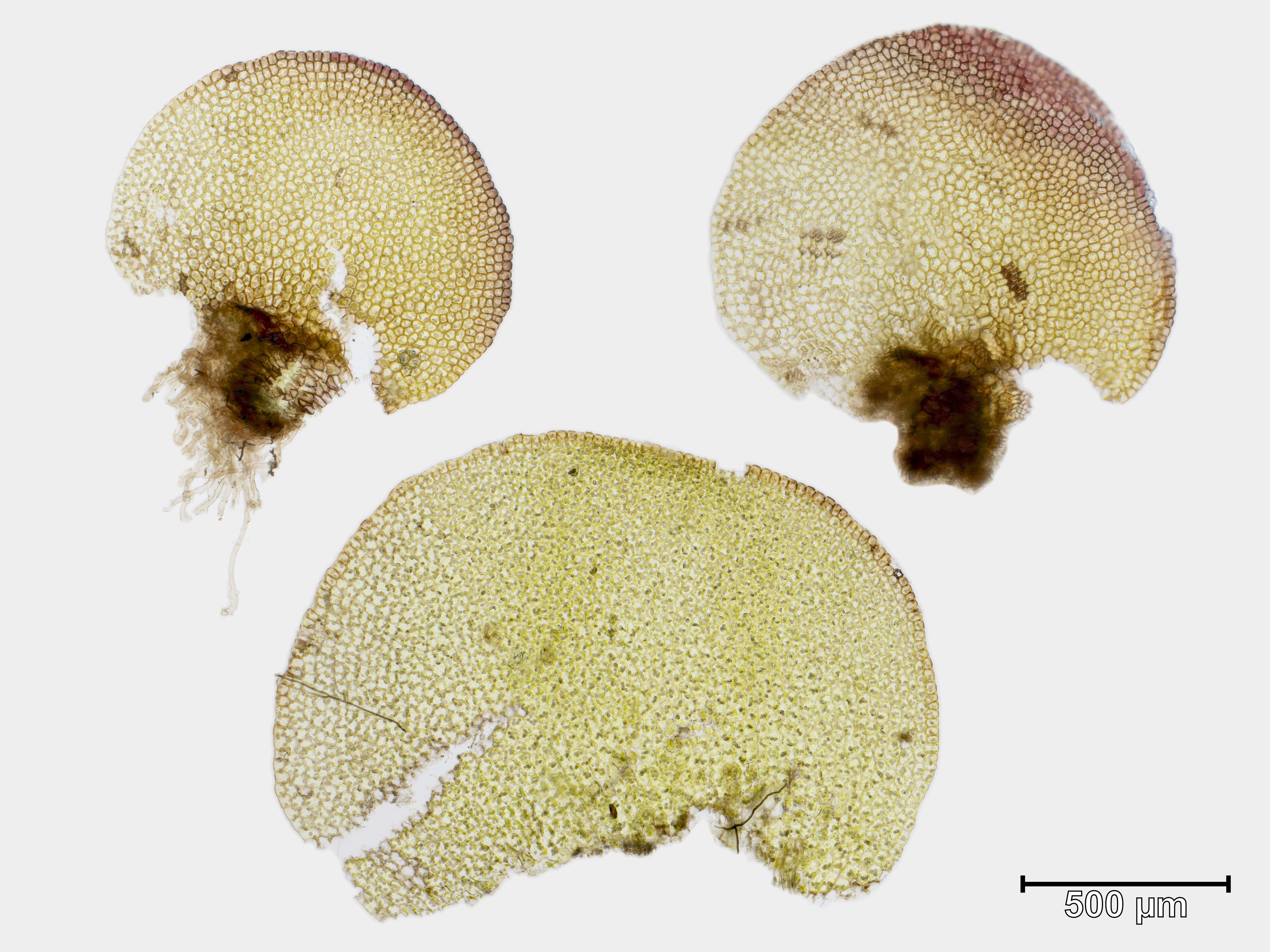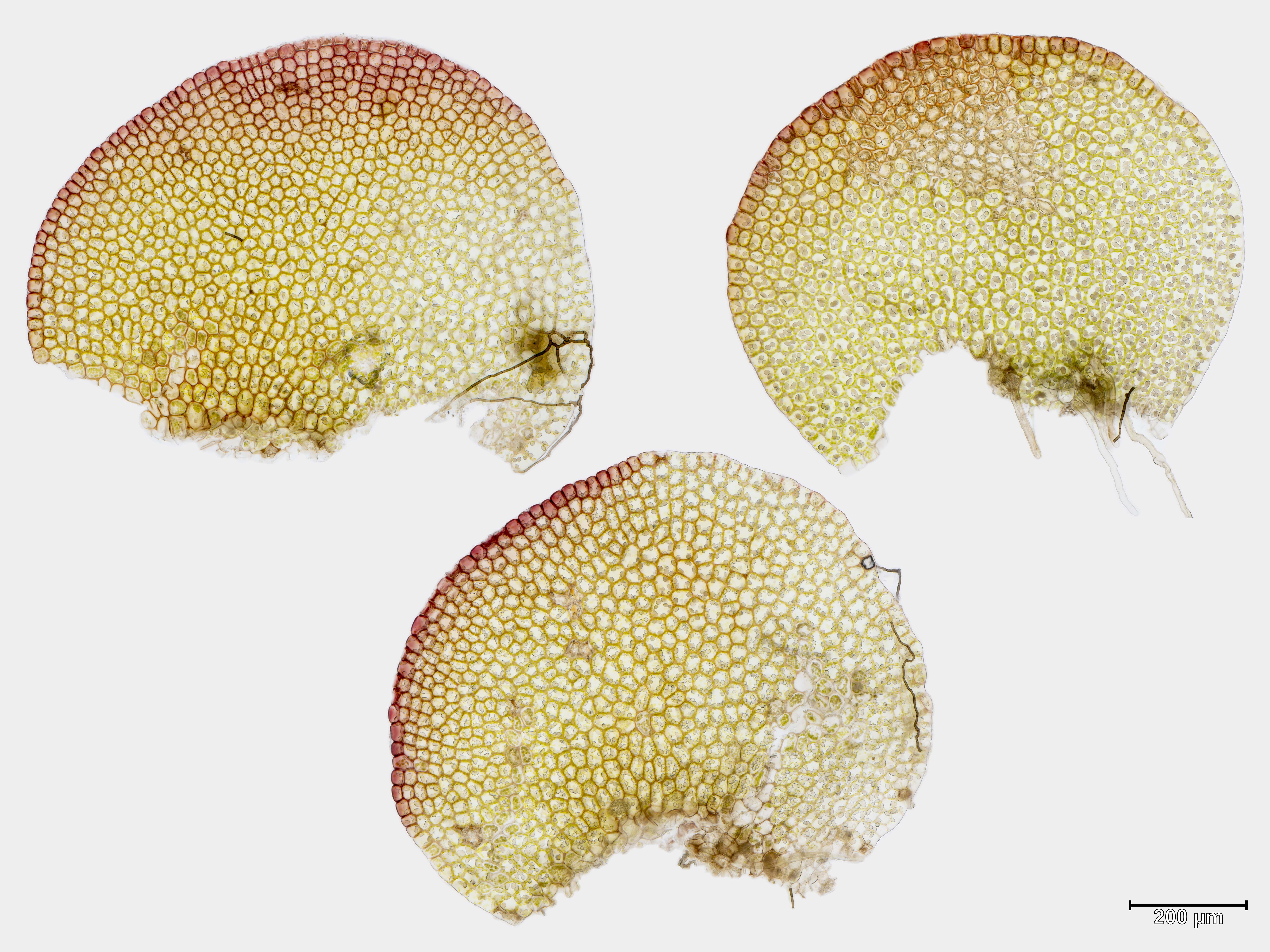![]() Solenostoma sphaerocarpum Flankenblatt Blattbasis | ![]() Solenostoma sphaerocarpum Flankenblatt Blattmitte | ![]() Solenostoma sphaerocarpum Flankenblatt Blattrand |