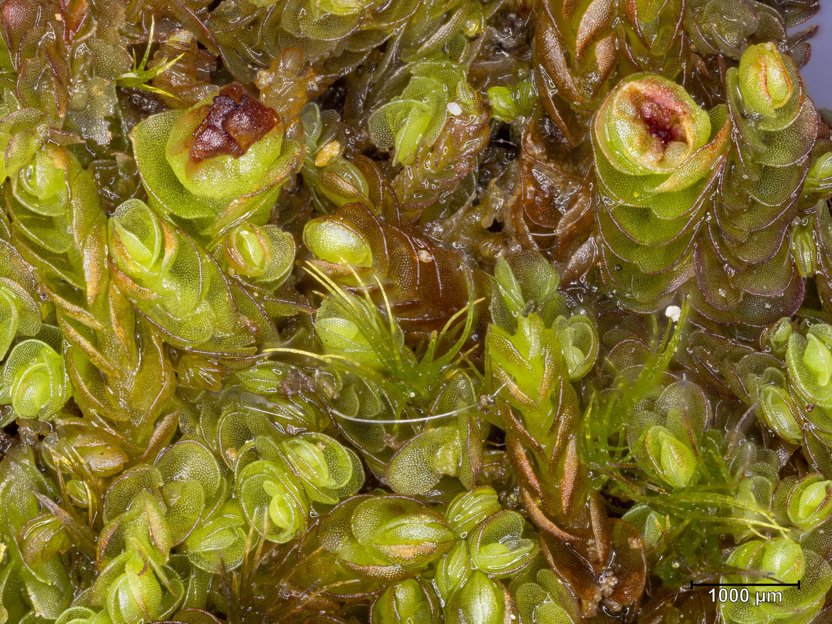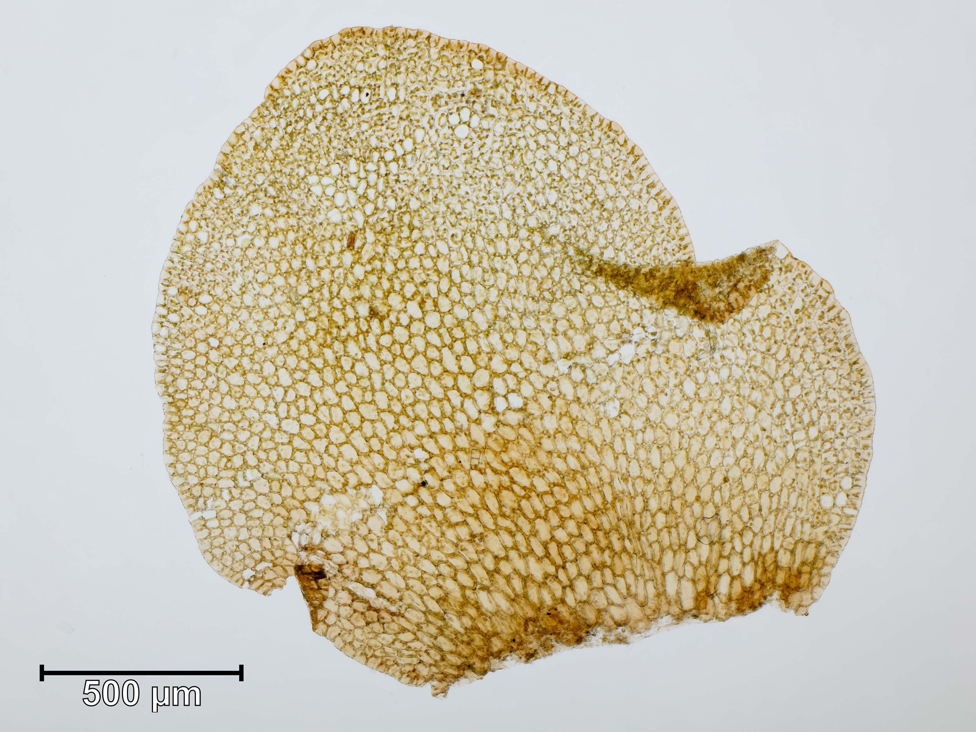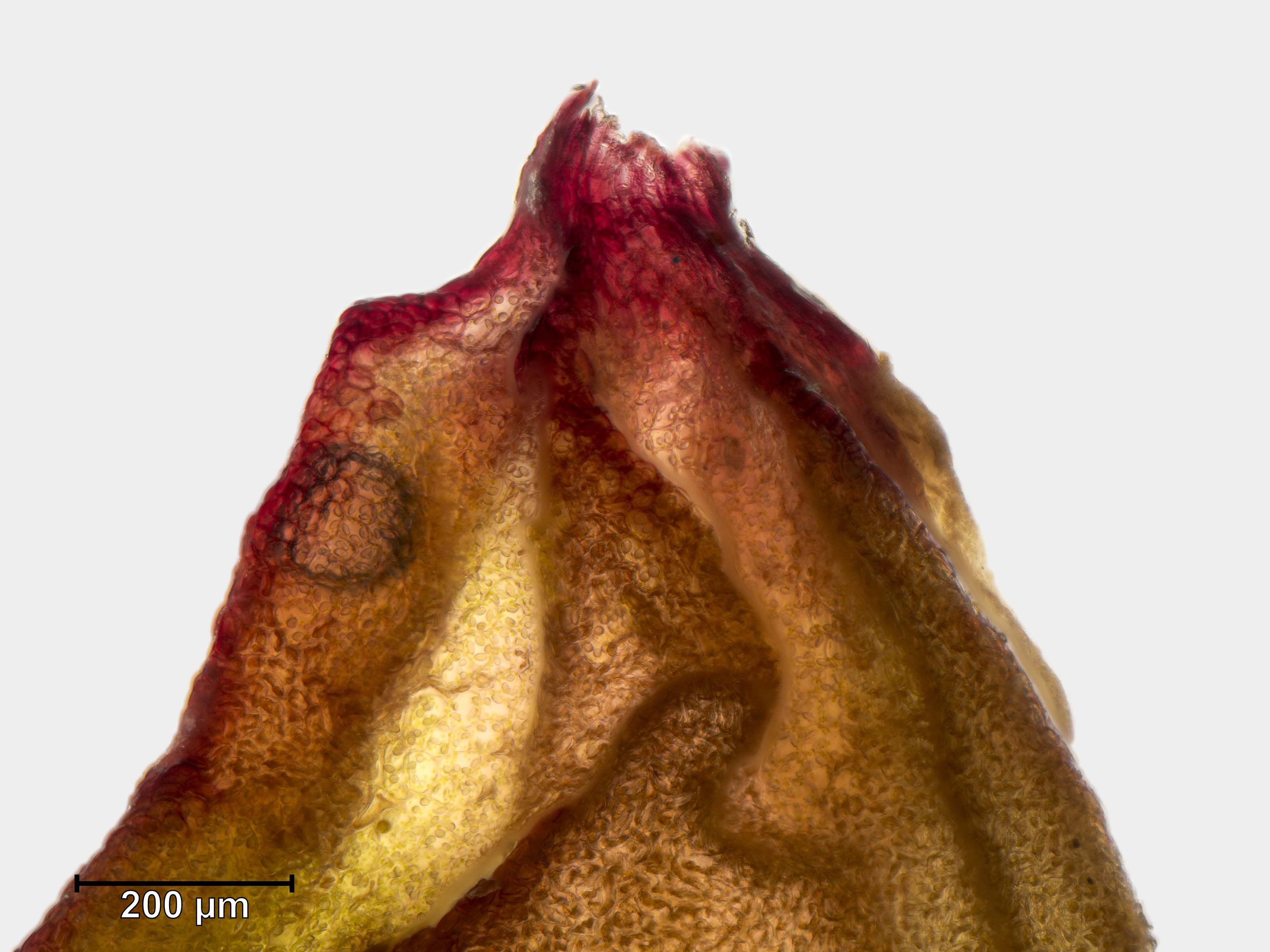 ![]() Solenostoma sphaerocarpum Flankenblatt Blattspitze |