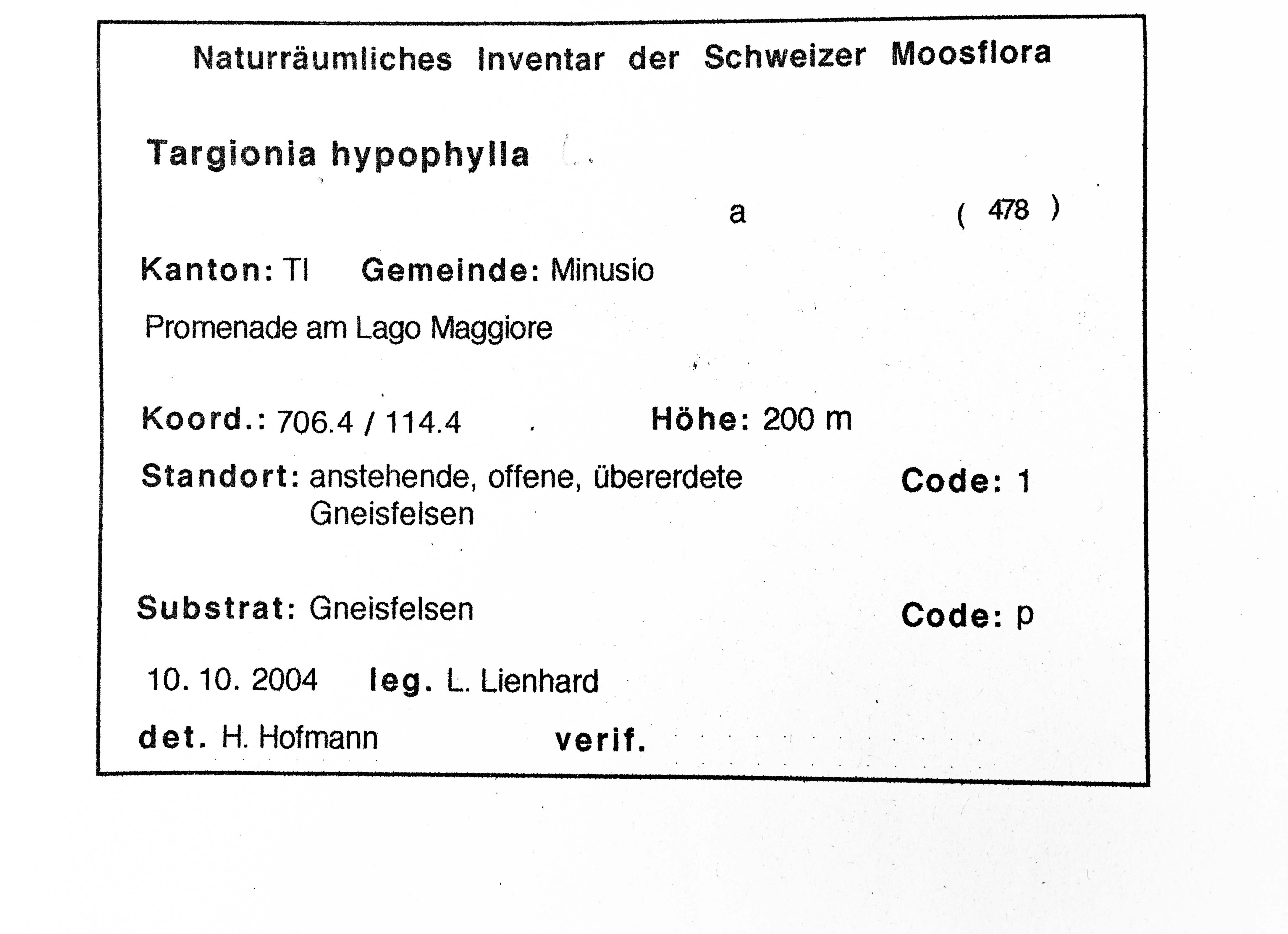 Targionia hypophylla Herbarbeleg