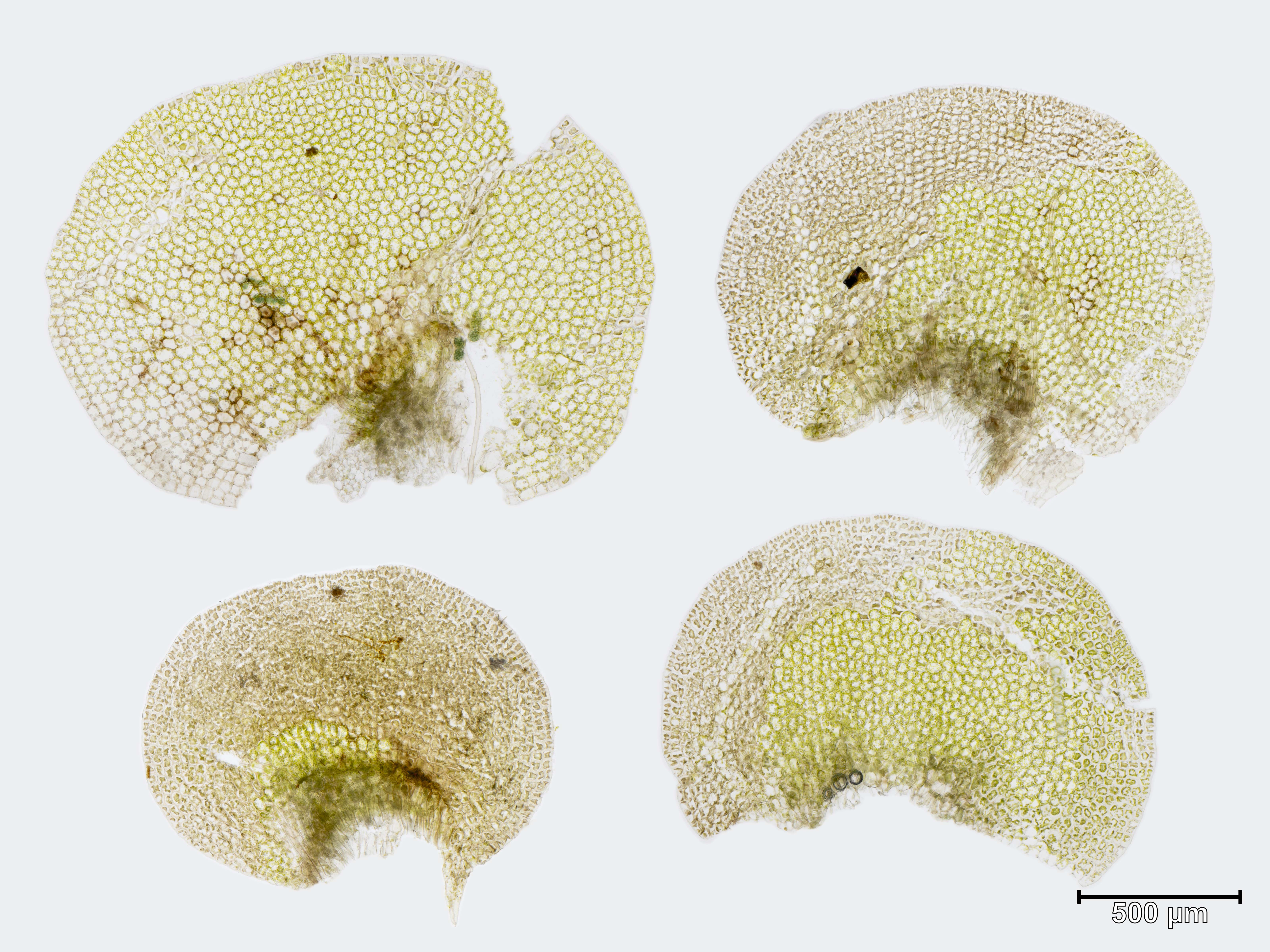 ![]() Solenostoma sphaerocarpum Flankenblatt Blattbasis | ![]() Solenostoma sphaerocarpum Flankenblatt Blattmitte | ![]() Solenostoma sphaerocarpum Flankenblatt Blattrand |